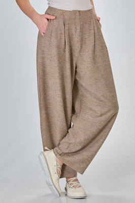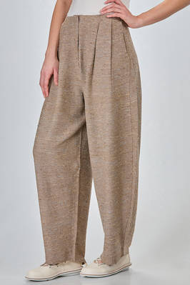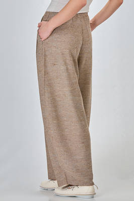 oversized trousers in a silk and cotton melange shantung-effect knit, elastic waistband, concealed front zip closure, front darts, vertical welt pockets on the sides. The model is 180 cm. tall ans wears a size M