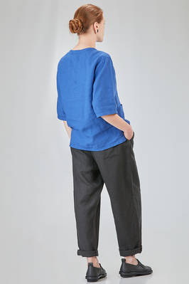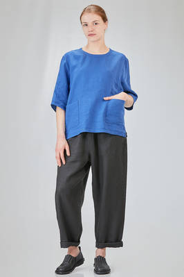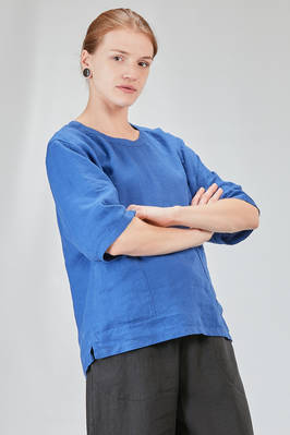 long and wide shirt in flamed and washed linen canvas, round-neck, short sleeves, two pockets applied at the bottom, lateral slits at the bottom