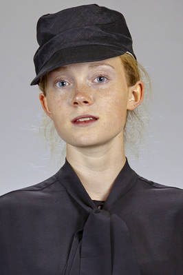 ramié and linen pinstriped satin cap, soft front and irregular pleats on the front