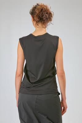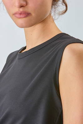 basic, hip-lenght, in compact cotton jerey, round-necked tank top. The model is 180 cm tall and wears a size L.