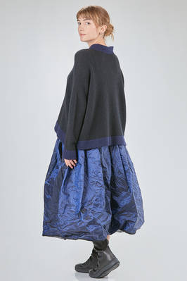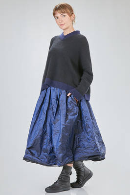 hip-length sweater, wide, in soft cashmere and silk knit with profiles in contrast of color, V-neck slightly rising, dropped long sleeves, slightly longer bottom on the sides. The model is 168 cm. tall and she is wearing a size I