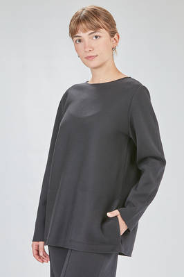 long and flared tunic in knitted merino wool fabric