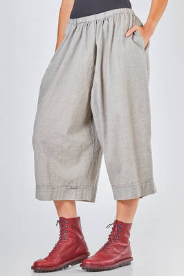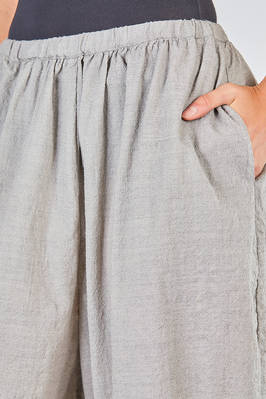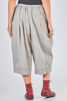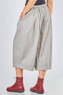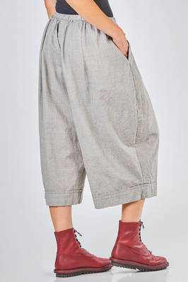 short and wide trousers in washed wool and polyamide crêpe, elastic waistband and slight gathering, vertical welt pockets on the sides. The model is 178 cm tall and wears size I