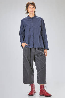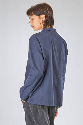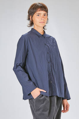 long and wide shirt in washed cotton and polyester popeline, small shirt collar, button closure down to the bottom, long sleeves. The model is 178 cm tall and wears size I