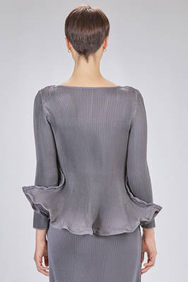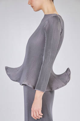 hip-length 'sculpture' top, fitted line, in vertically pleated polyester plissé