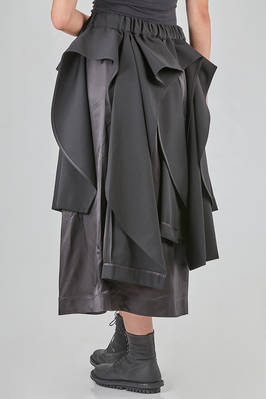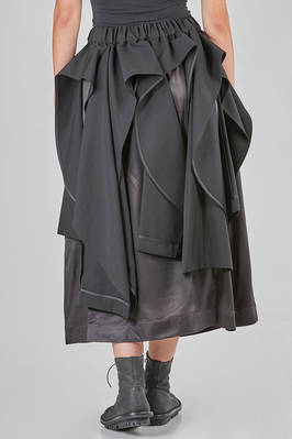 long and wide 'sculpture' skirt in wool and cupro gabardine, elastic waistband and drawstring, reversed wavy folds positioned at scattered heights that give petals effect all over the skirt, vertical welt pockets on the sides. The model is 167 cm. tall and she is wearing the size S