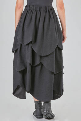 long and wide skirt in wool herrington, lined in cupro, elastic waistband and drawstring, vertical welt pockets on the sides, overlapping cut and rounded petals motif. The model is 167 cm. tall and she is wearing the size S