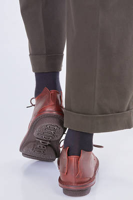 shoes in calf leather natural dyed with aged effect gradient, laces closure, panels that protrude upwards on the sides of the ankle, double lateral panel on the side of the closure, classic anti-slip rounded sole in rubber, inner removable sole in cork