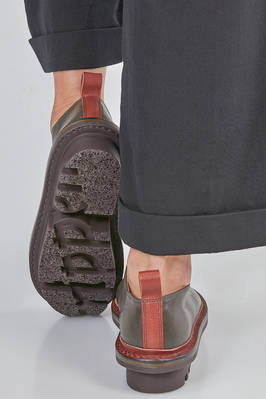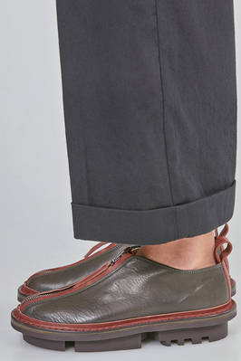shoes in bicolor calf leather, zip-closure along the center of the upper shoe with profiles in contrast of color, rounded sole in rubber and removable inner sole in cork