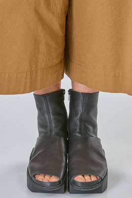 modular shoe in cowhide leather, sabot-style constructionwith open toe and a removable galosh-style insert, featuring a lower velcro strap fastening and an inner side-zipper, finished with a two-block Japanese rubber sole