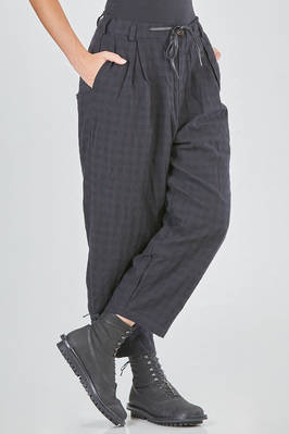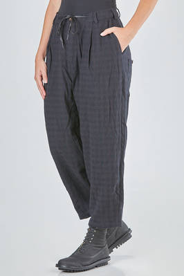 pantalone morbido, alla caviglia, in twill di lana con lavorazione a check tono su tono