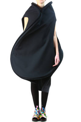 abito "sculpture", longuette, in tropical di lana e poliestere, con borlotto centrale imbottito ad effetto avvitamento, senza maniche, tagli a vivo