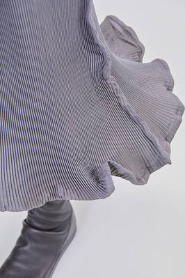 gonna sculpture a tubino longuette in plissé di poliestere a pieghe verticali, elastico in cintura, fondo tutto modellabile con anima metallica ondulata. La modella è alta cm 180 e indossa la taglia M
