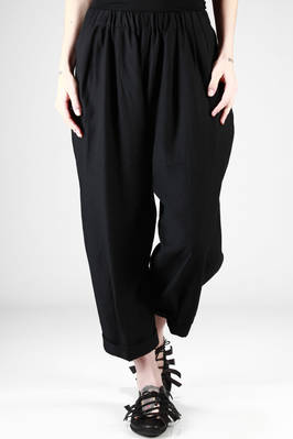 pantalone ampio in garza di rayon, cotone e seta lievemente cangiante, elastico in cintura, fondo con risvolto e pinces, tasche a filo verticali ai lati, taglia francese
