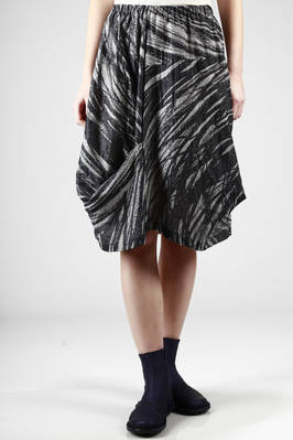 gonna sotto al ginocchio in tela ad effetto garza di cotone, rayon e seta con stampa 'graffiti', elastico in cintura, pieghe asimmetriche cucite al fondo ad effetto tasche, linea lievemente ad anfora, taglia francese
