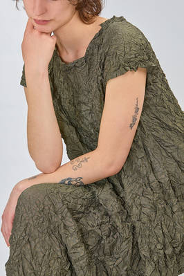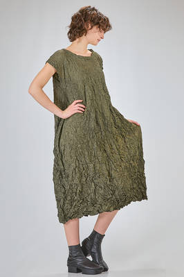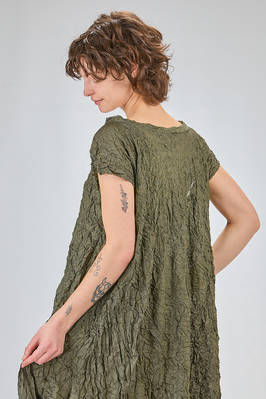 abito longuette, ampio e svasato, in froissé leggero di poliestere garzato