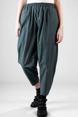 pantalone a palloncino in popeline di cotone croccante, elastico in cintura, tasche a filo verticali ai lati, fondo più stretto con spacchetto sul retro