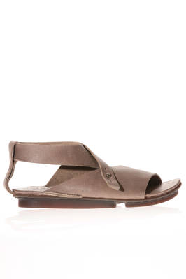 sandalo in pelle di vacchetta, tomaia con due fasce diagonali, punta e tallone scoperti, chiusura diagonale con cinghietta che gira intorno alla caviglia, suola concava in gomma