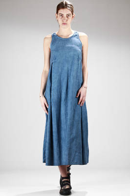 abito lungo in mussola di cotone lavato, girocollo ampio, senza maniche, cuciture orizzontali ai lati con lunga pinces verticale, linea svasata