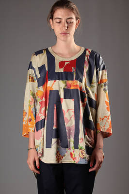 t-shirt over in jersey di cotone e seta con stampa floreale e scritta ‘Climate Revolution’, ampio scollo rotondo, manica sopra ai polsi